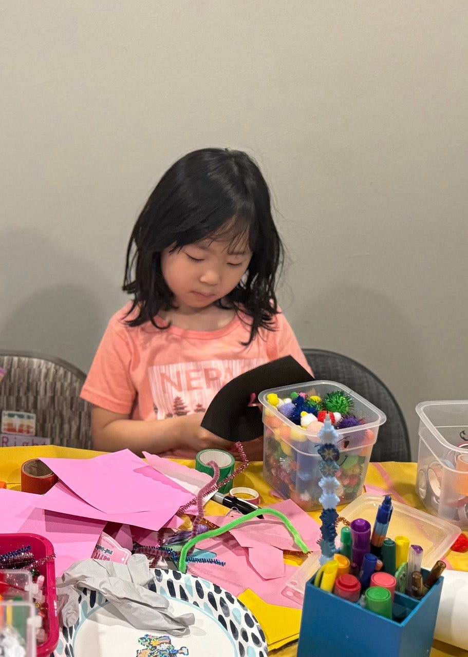 For example, my daughter isn't particularly interested in art but enjoys expressing herself through music, storytelling, and dance. I encourage her to explore these interests while also gently introducing her to art by providing opportunities for creative activities. Recently, she has become fascinated with crafting while incorporating storytelling, combining her love for creativity with her interest in narratives.